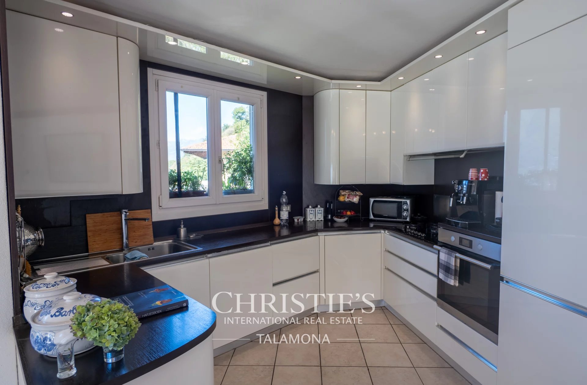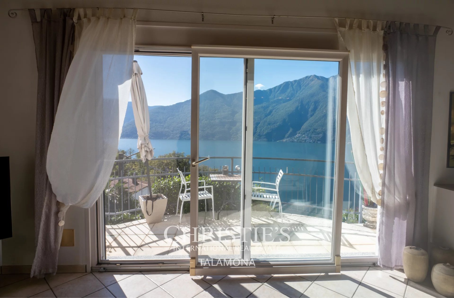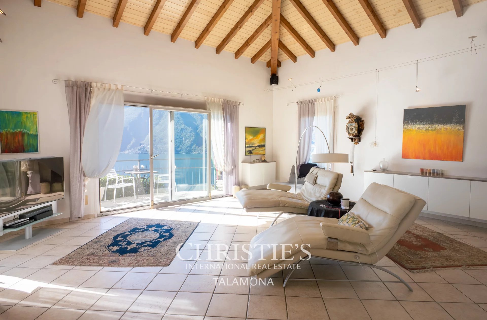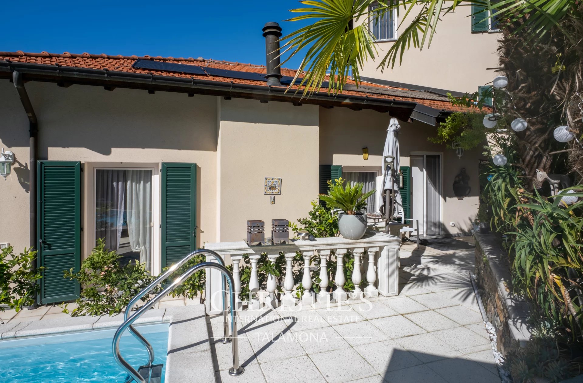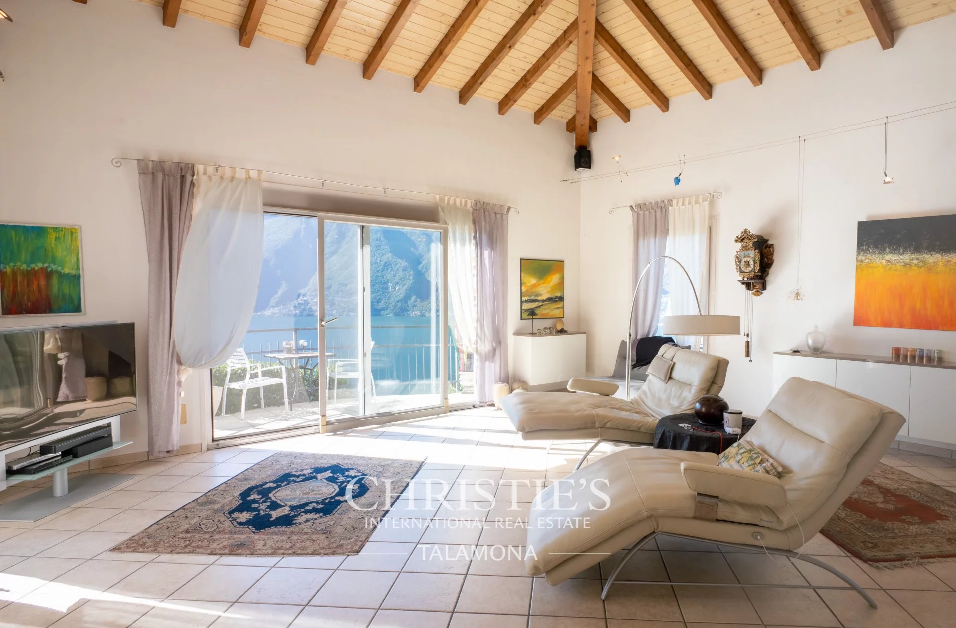 This exquisite villa boasts a fantastic pool with lake views. Thanks to its hillside location, the view remains unobstructed.