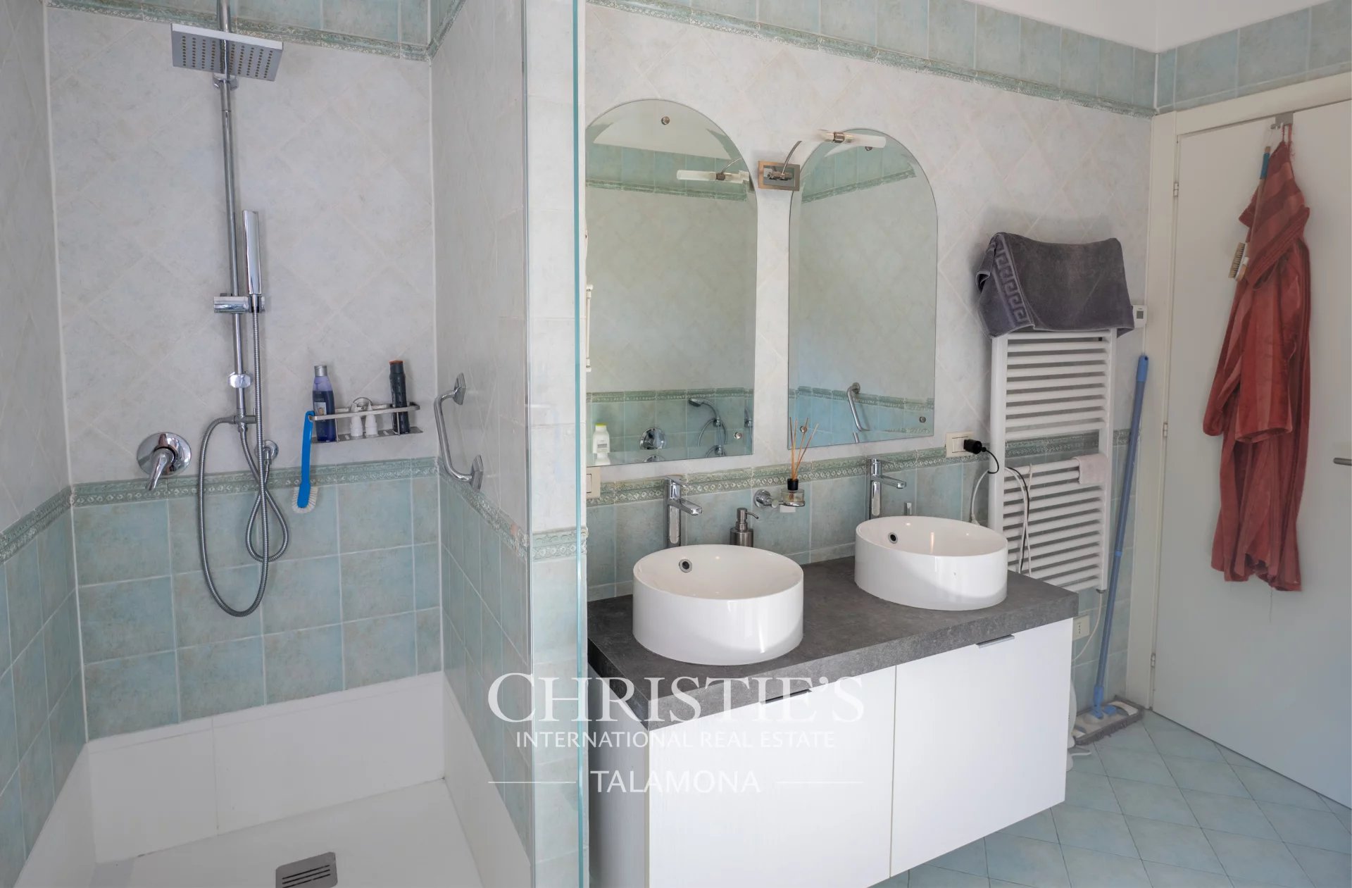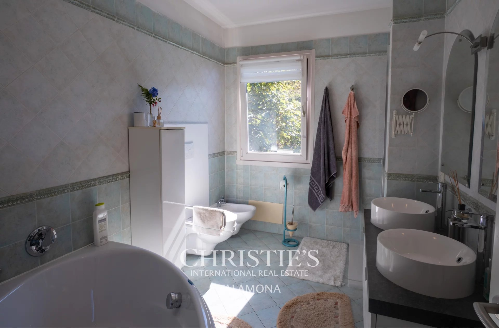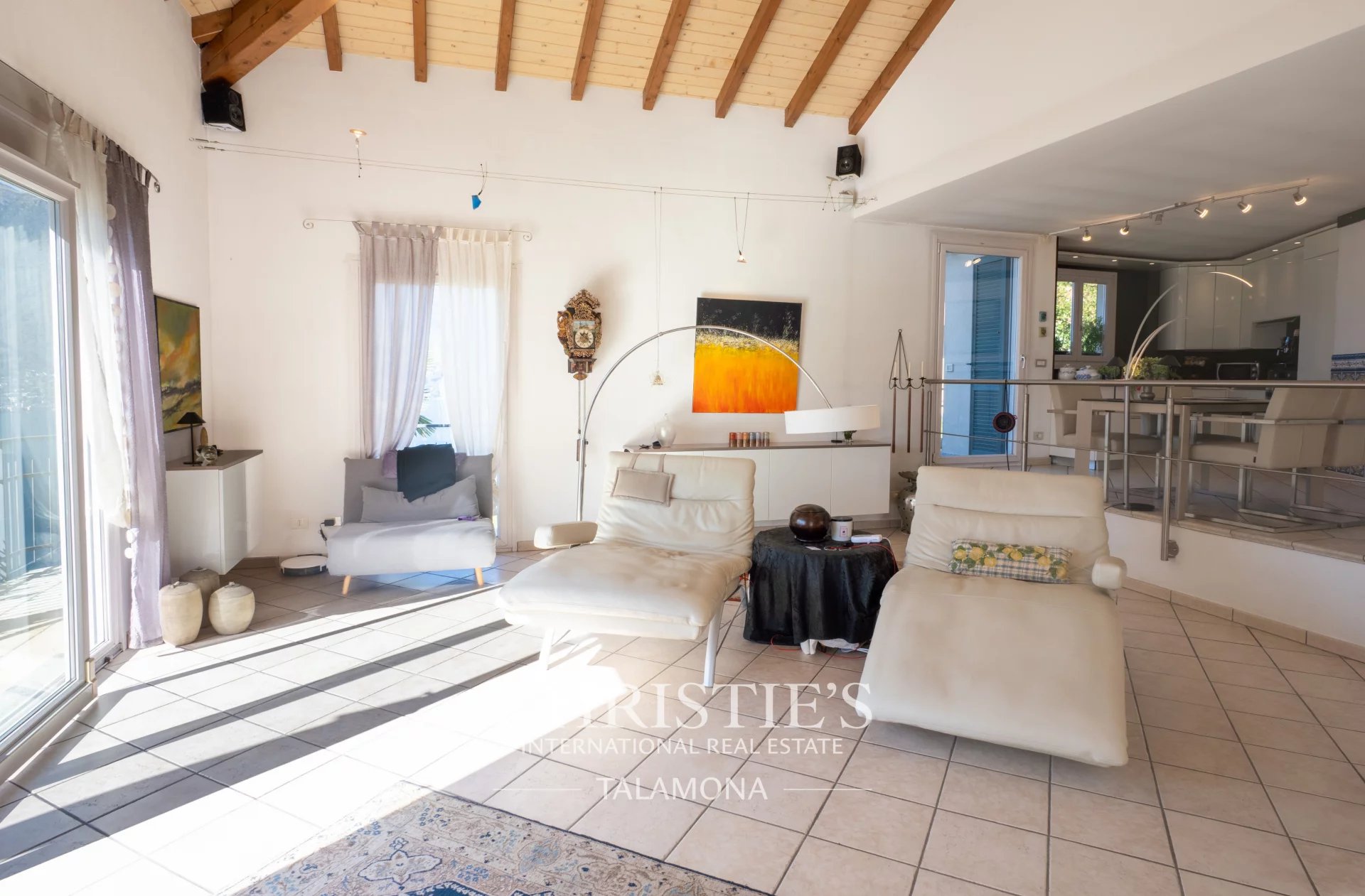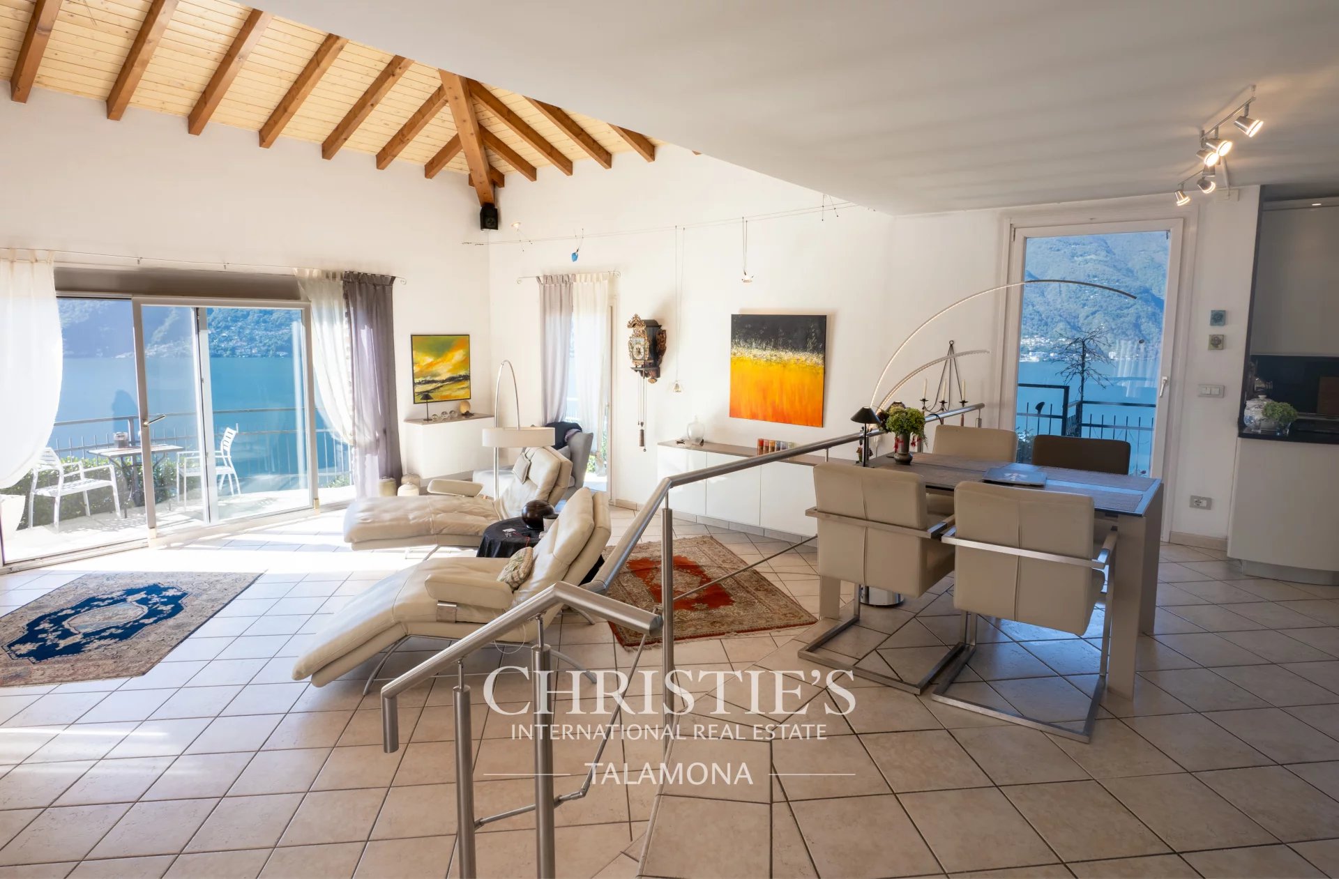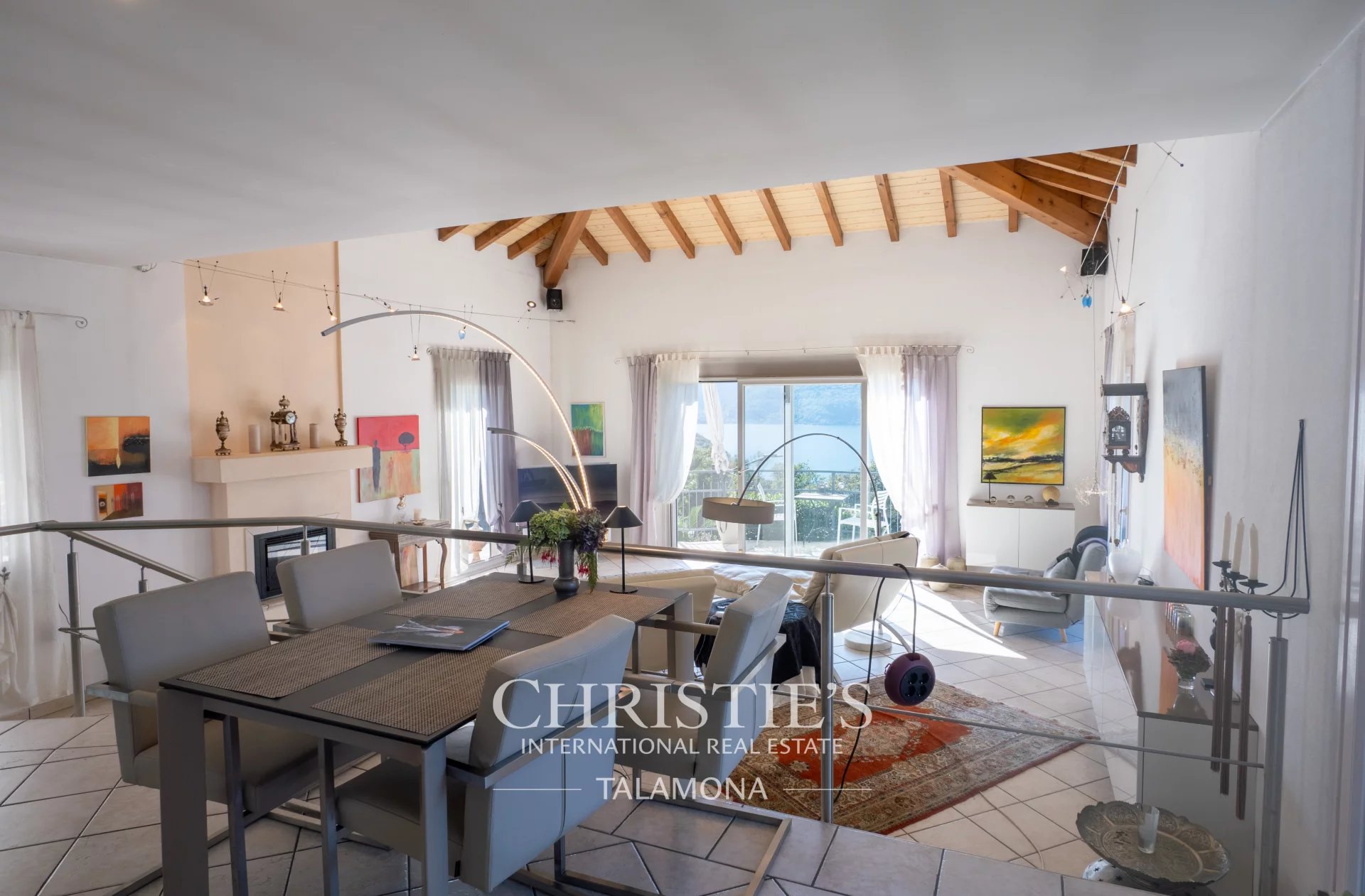 This exquisite villa boasts a fantastic pool with lake views. Thanks to its hillside location, the view remains unobstructed.